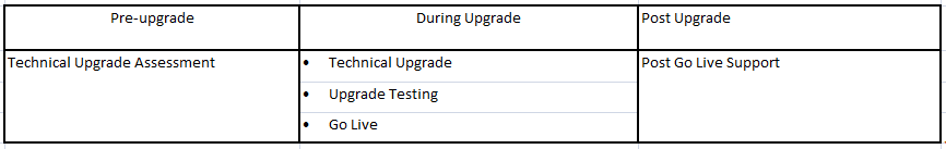 Upgrade testing is performed over 3 iterations for Dev, Test, and Pre-Prod environments in CRP1/ Unit testing, CRP2/ System Integration Testing and User Acceptance Testing.