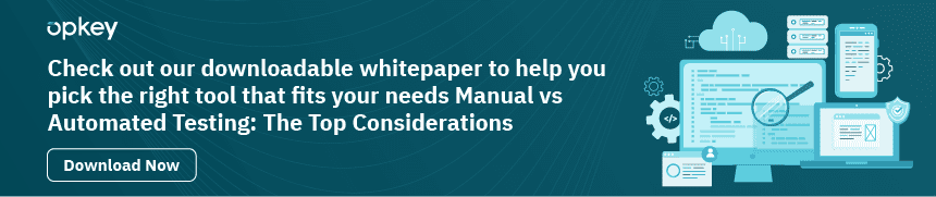 End-to-end testing scenarios: Automated testing approach works best for systems that span many applications. Although end-to-end tests can cover a variety of technologies, their breadth depends on the business processes involved. End-to-end tests check for any modification or update in interconnected systems, and provide a thorough evaluation of all stages of a software process. In e-commerce, for example, an end-to-end test would monitor every step of an interaction, from a customer clicking the ‘order’ button to the manufacturer shipping the product. Automation rapidly speeds up this type of testing. Opkey provides “one-click” test capability, as well as self-healing tests that automatically deal with problems that arise.
