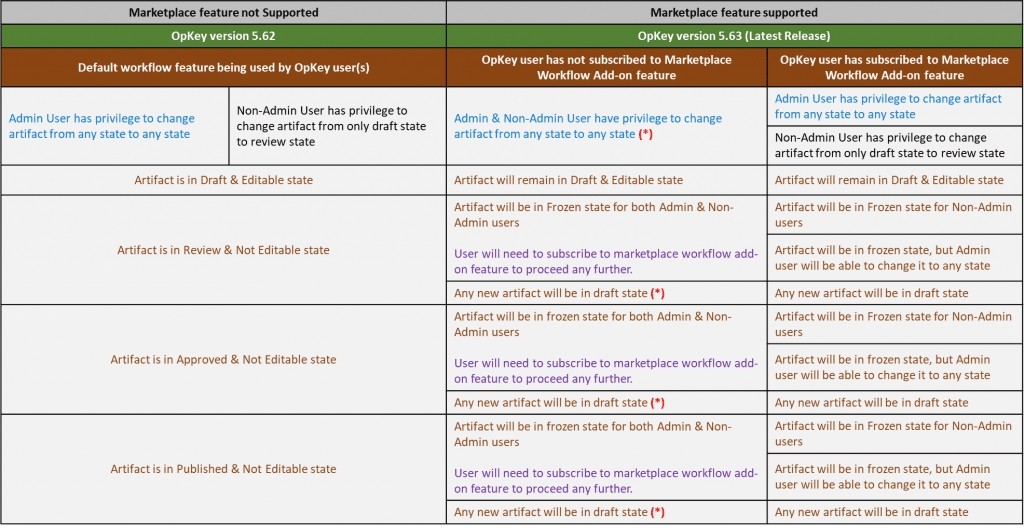 Opkey users, opting to stay on version 5.62 will not have access to Marketplace, and will continue to work with the Opkey default workflow feature. However, should they decide to upgrade to Opkey 5.63 or the latest versions, they need to be aware of functional changes, impacting the state, transition, and accessibility of their existing and new test artifacts, as they decide to subscribe/un-subscribe Marketplace Workflow Add-On feature of Opkey.