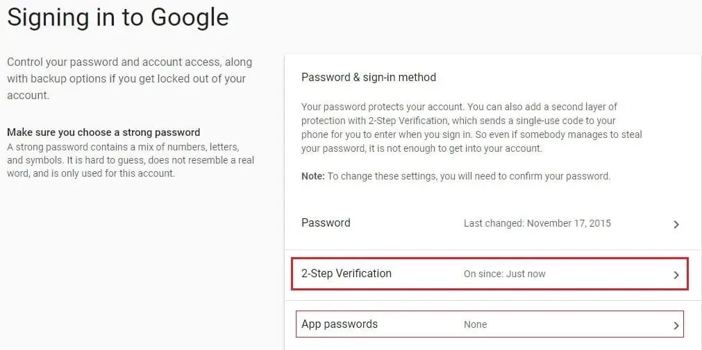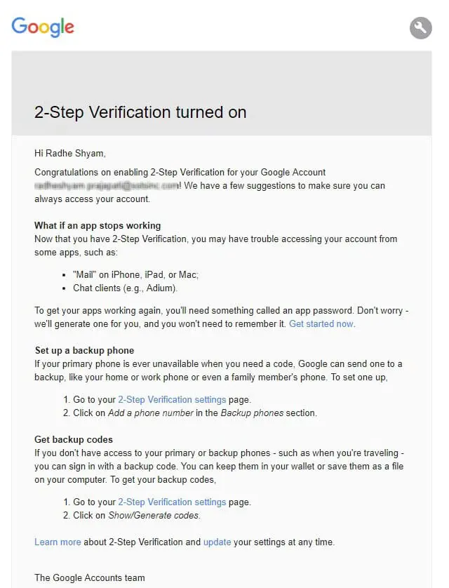 Note: If you don’t do this, you will get an invalid password error when trying to authenticate your email address. So, you first need to enable 2-step verification.
