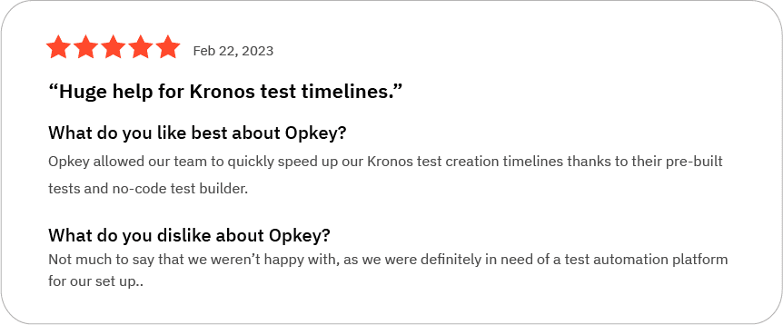 According to Pankaj Goel, Opkey’s CEO & Founder, the continued success of Opkey on platforms like G2 highlights the robustness of the product. The reviews span across multiple applications, like Oracle, Salesforce, Kronos, and more.