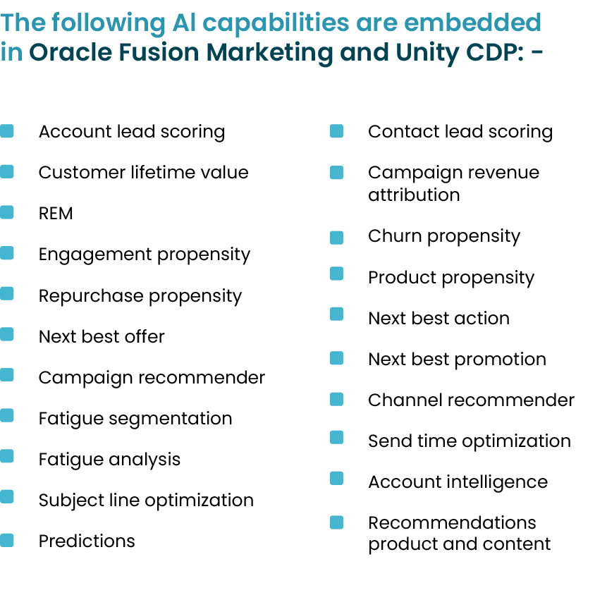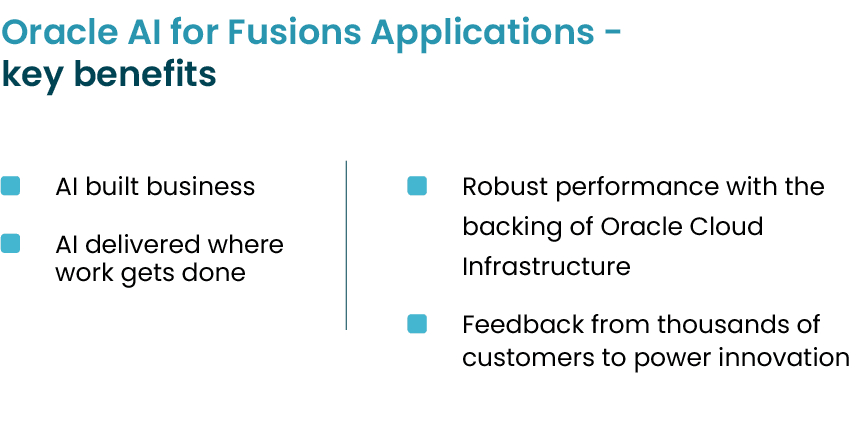 - AI built for business: Oracle prioritizes customer data security empowering user(s) to work smarter without relinquishing control over decision-making.