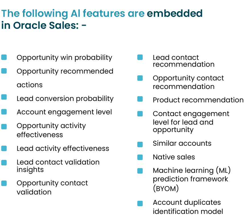 Oracle AI for Oracle Sales empowers your sales teams by identifying and directing them to high-probability leads and opportunities, accelerating deals, and enhancing sales conversion rates through real-time AI-enabled automation.