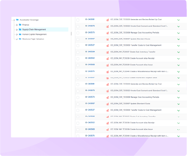 New updates in order management, procurement workflows, and warehouse controls can risk disruption if not tested thoroughly. Opkey helps you validate critical SCM workflows, so your supply chain stays resilient and disruption-free.