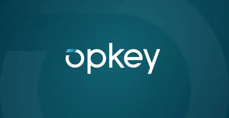 Opkey logo on a teal background