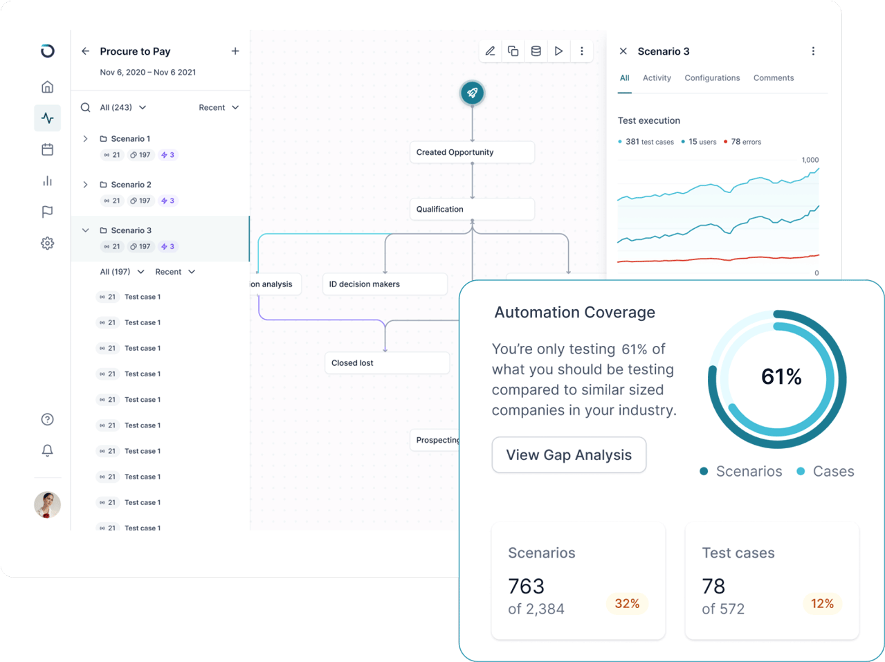 Opkey's test automation solution plugs into your ERP environment to immediately discover your legacy tests. Opkey also mines your process logs to identify gaps in coverage.